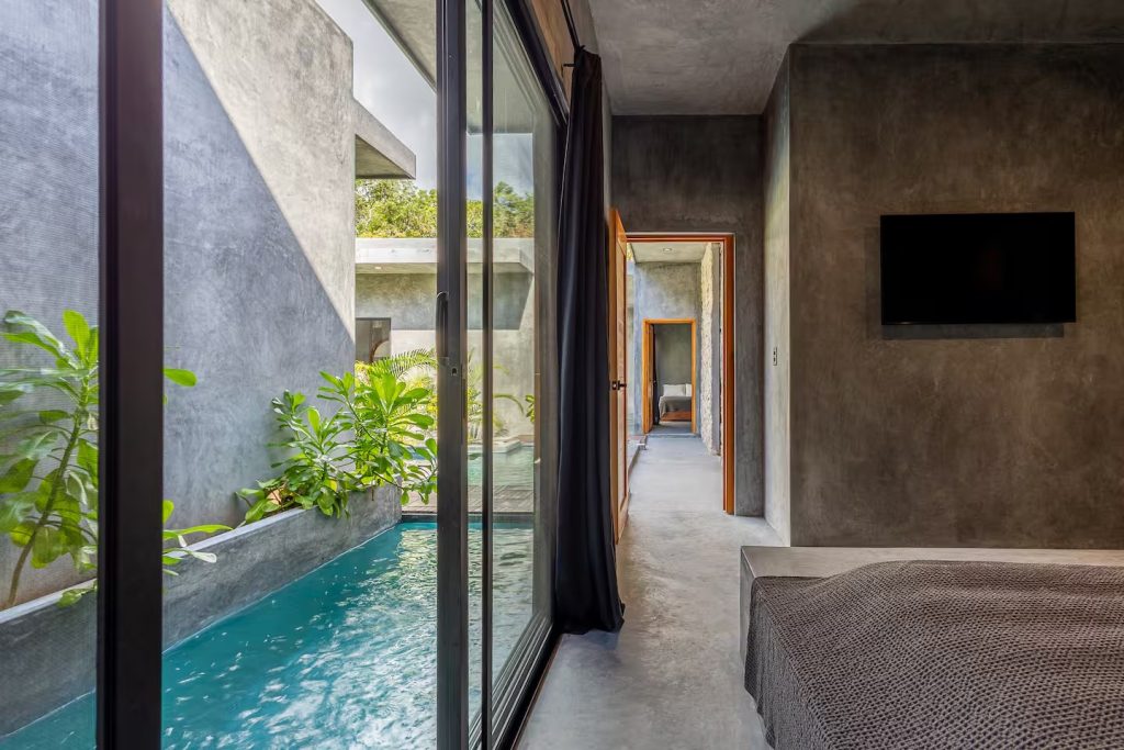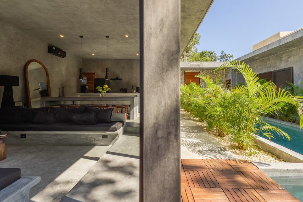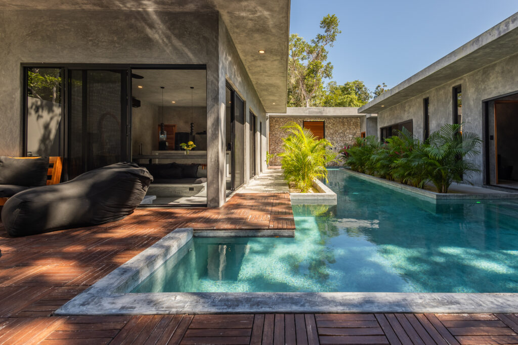 Minimalist 4-suite jungle villa with private pool, daily housekeeping and concierge, just 7 minutes from Tulum’s beach and hotel zone.